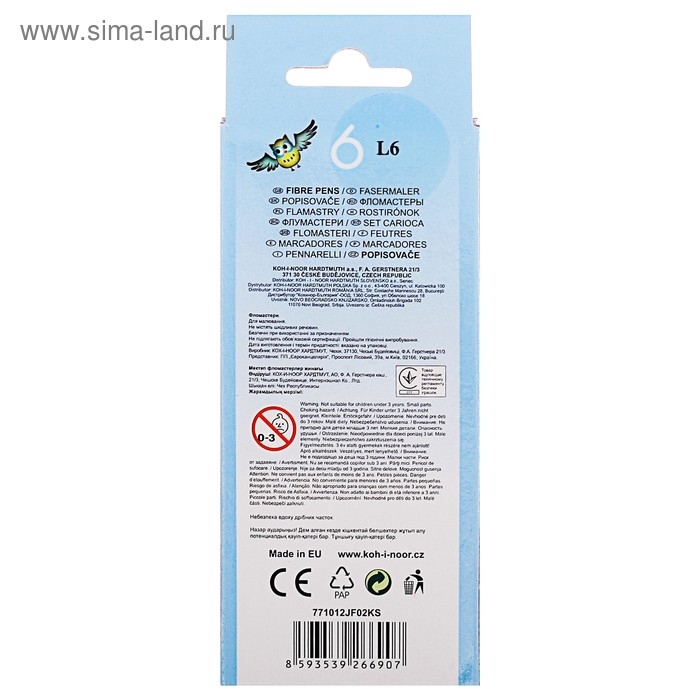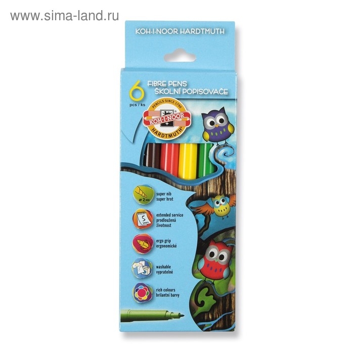 Фломастеры 6 цветов Koh-I-Noor 1012/06 "Совы", картонная упаковка, европодвес