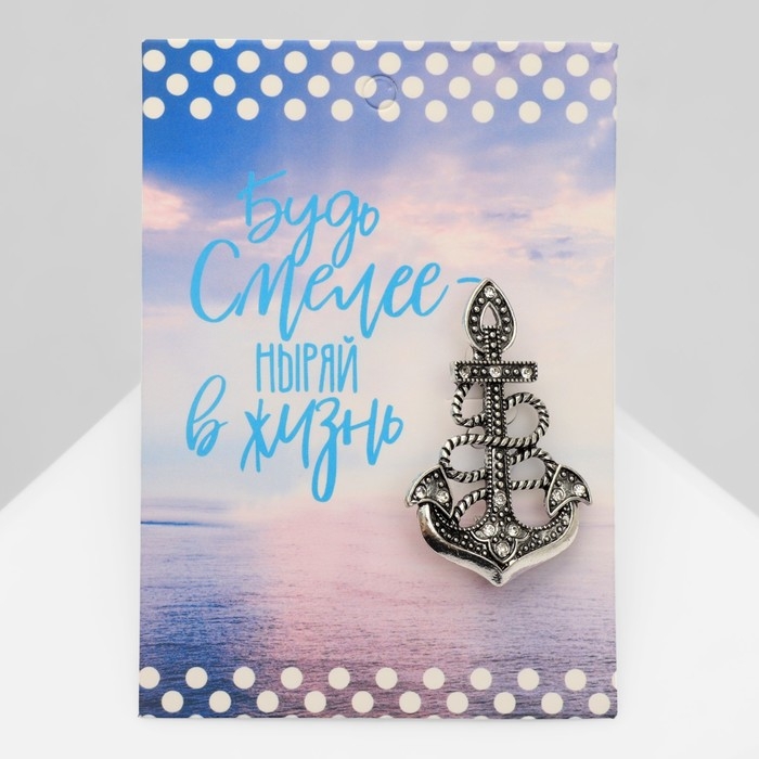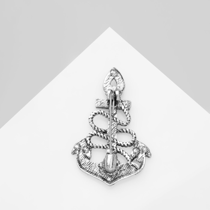 Брошь «Якорь» ретро, цвет белый в чернёном серебре
