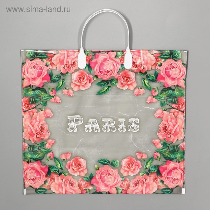 Пакет "Сады Парижа", полиэтиленовый с пластиковой ручкой, 37 х 34 см, 80 мкм