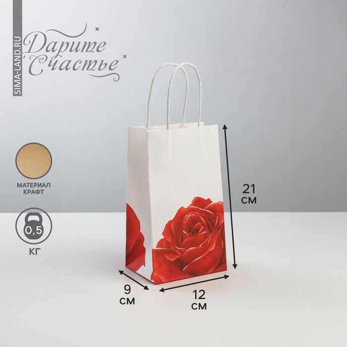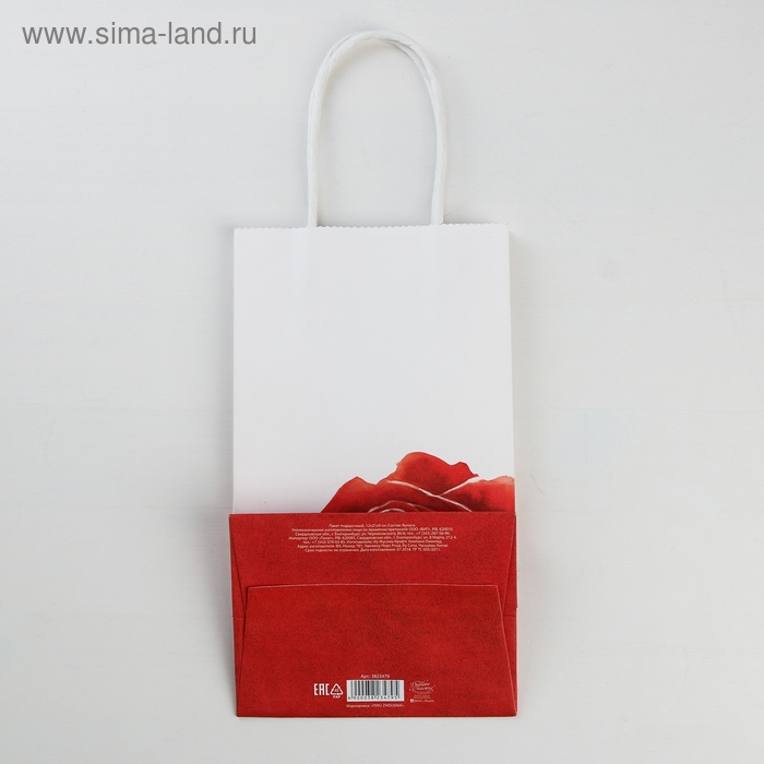 Пакет подарочный крафт, упаковка, «С Любовью», 12 х 21 х 9 см