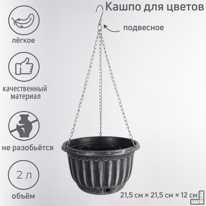 Кашпо пластиковое для цветов подвесное с дренажной сеткой «Шебби», 2 л, серое