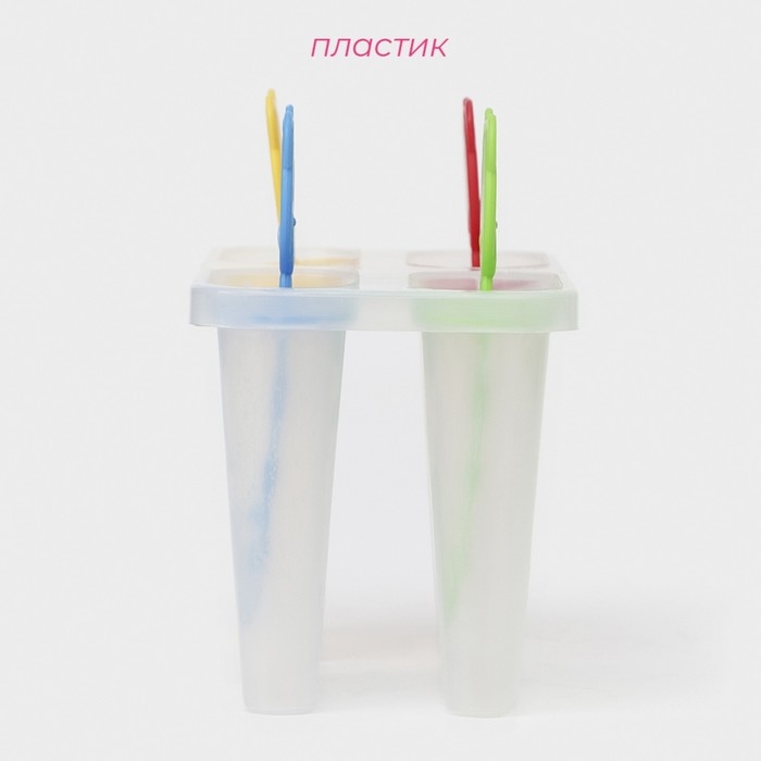 Форма для мороженого Доляна «Моника», силикон, 19,5×11 см, 4 ячейки (6,7×3,2 см), цвет МИКС