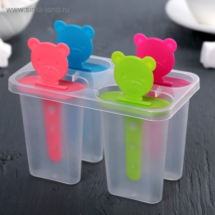 Форма для мороженого Доляна «Медвежонок», 13×11,5×7,5 см, 4 ячейки, цвет прозрачный