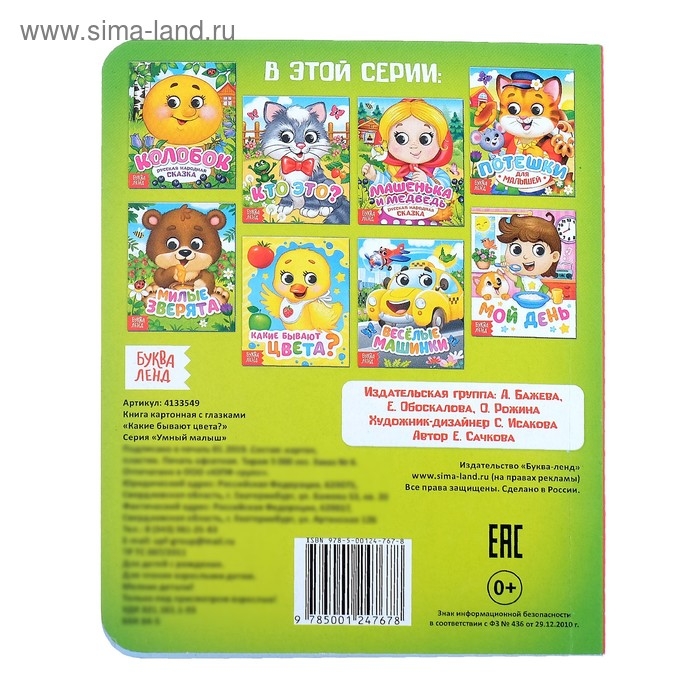 Книга картонная с глазками «Какие бывают цвета?», 10 стр.