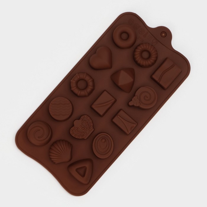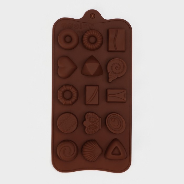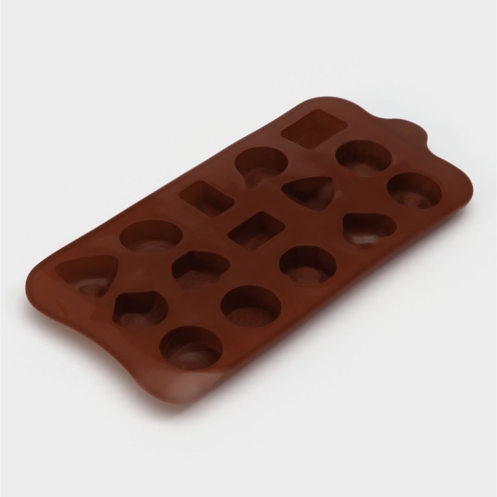 Форма для конфет и шоколада Доляна «Лакомство», силикон, 21×10,4 см, 15 ячеек, коричневая