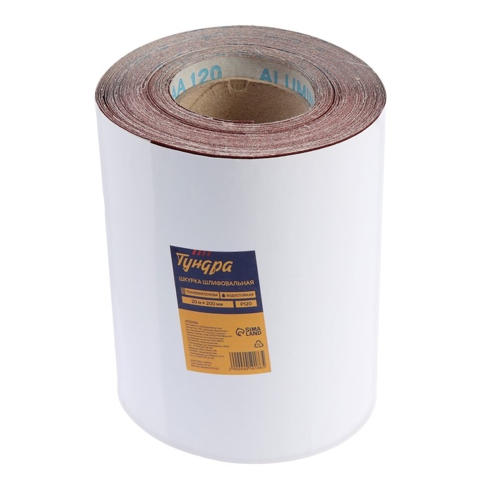Шкурка шлифовальная в минирулонах ТУНДРА, на тканевой основе водостойкая, 200мм х 20м, Р120