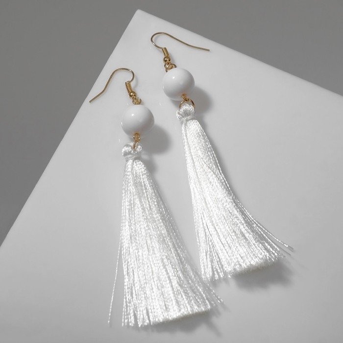 Серьги «Кисти» агата, цвет белый в золоте, L кисти 6,5 см