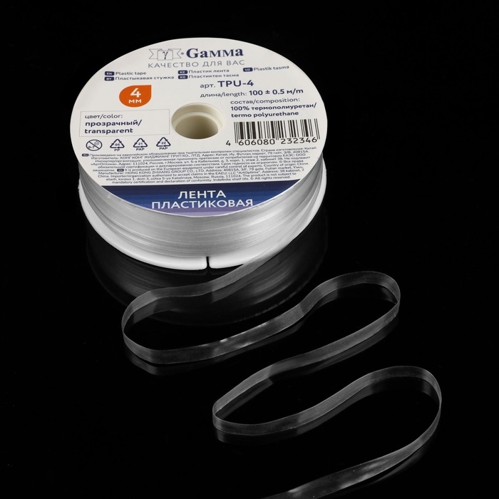 Пластиковая лента, 4 мм × 100 ± 0,5 м, цвет прозрачный, TPU-4