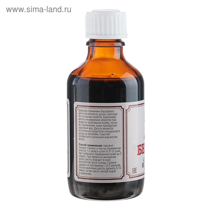 Берёзовый дёготь — маслянистая, тёмная, вязкая жидкость с резким запахом. Широко применяется в уходе за кожей и волосами, способствует восстановлению проблемных участков, подсушивает, снимает воспаления, успокаивает зуд.