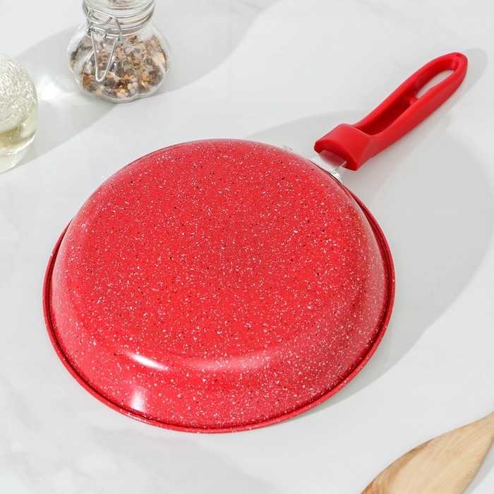Сковорода блинная Доляна Promo, d=22 см, пластиковая ручка, антипригарное покрытие, цвет бордовый