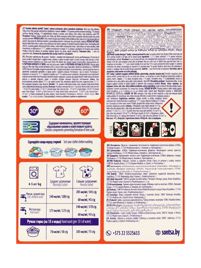 Парфюмированное средство для стирки цветного белья Сонца Sunday автомат, 400 г
