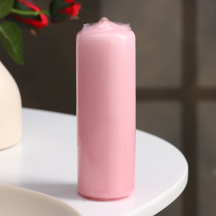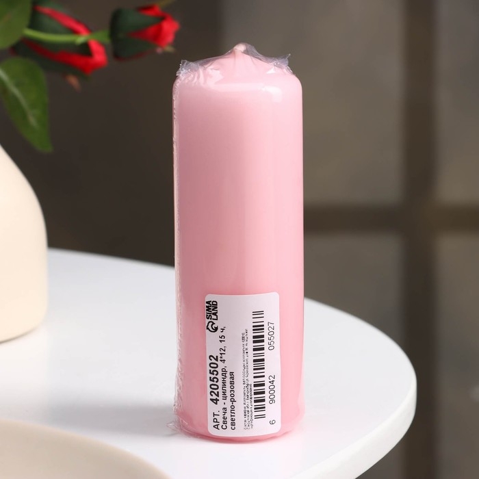 Свеча - цилиндр, 4×12 см, 15 ч, светло-розовая