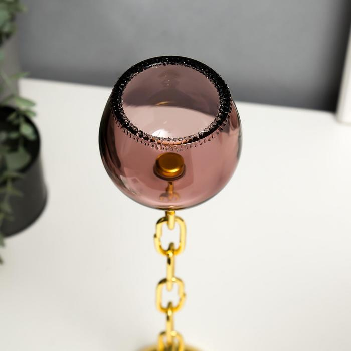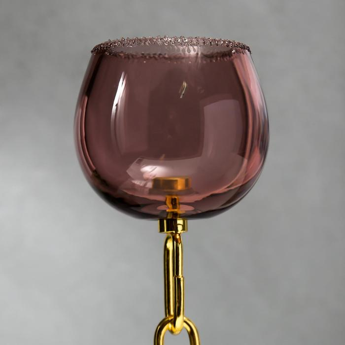 Подсвечник стекло на 1 свечу "Бокал и цепь" розовый и золото 32х9х9 см
