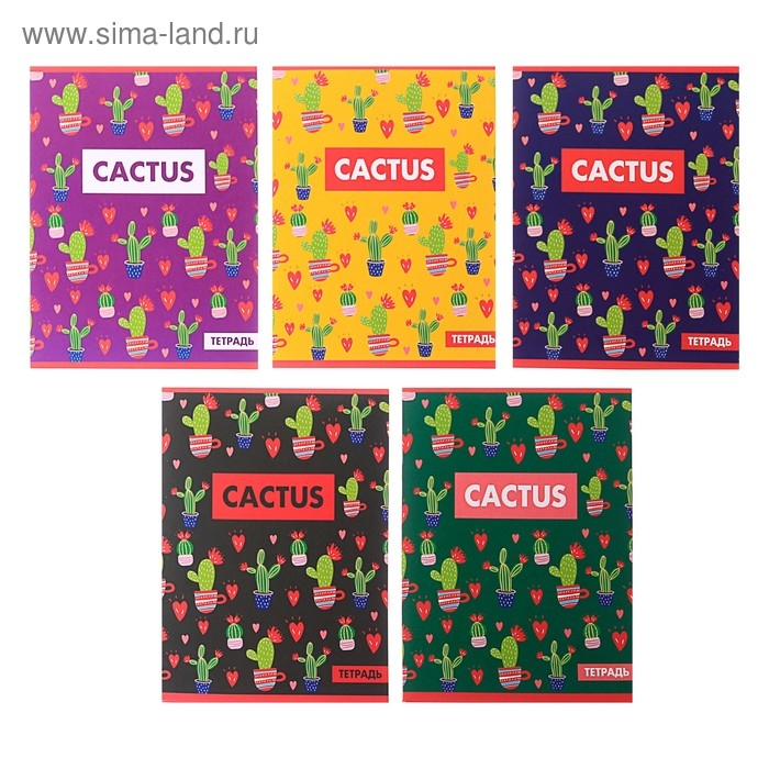 Тетрадь 48 листов в клетку Calligrata "Кактус", обложка мелованный картон, блок офсет, МИКС