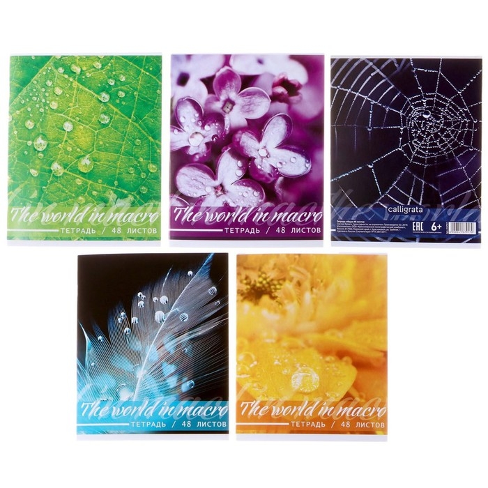 Тетрадь 48 листов в клетку Calligrata "Микромир", обложка мелованный картон, блок офсет, МИКС