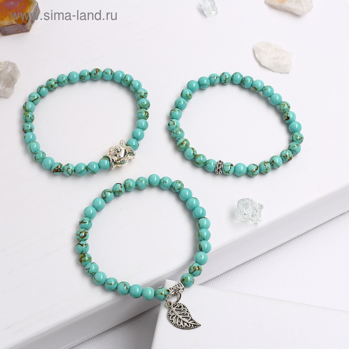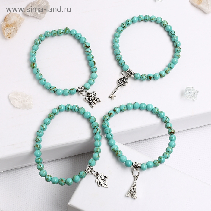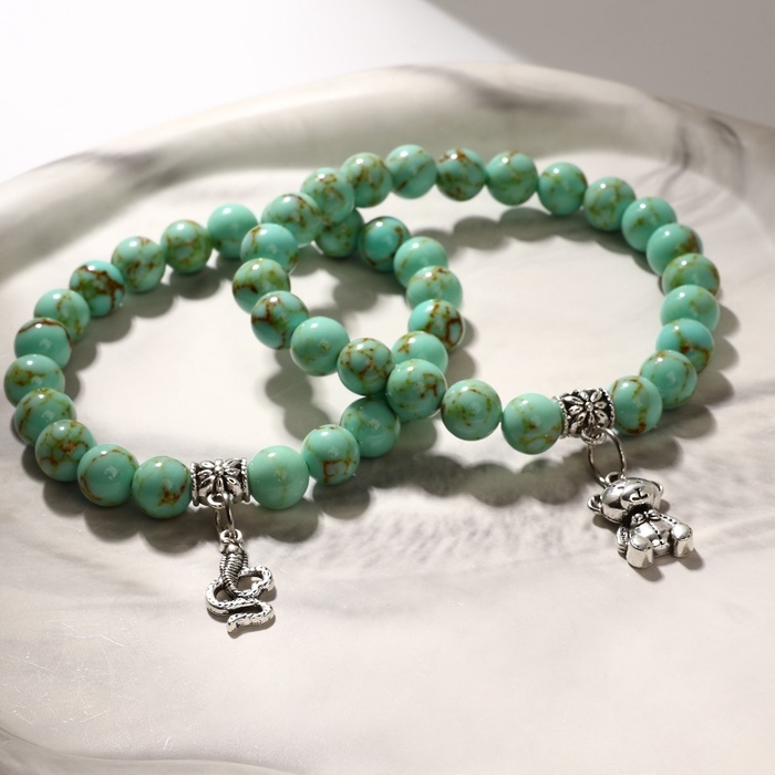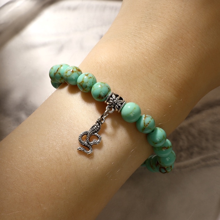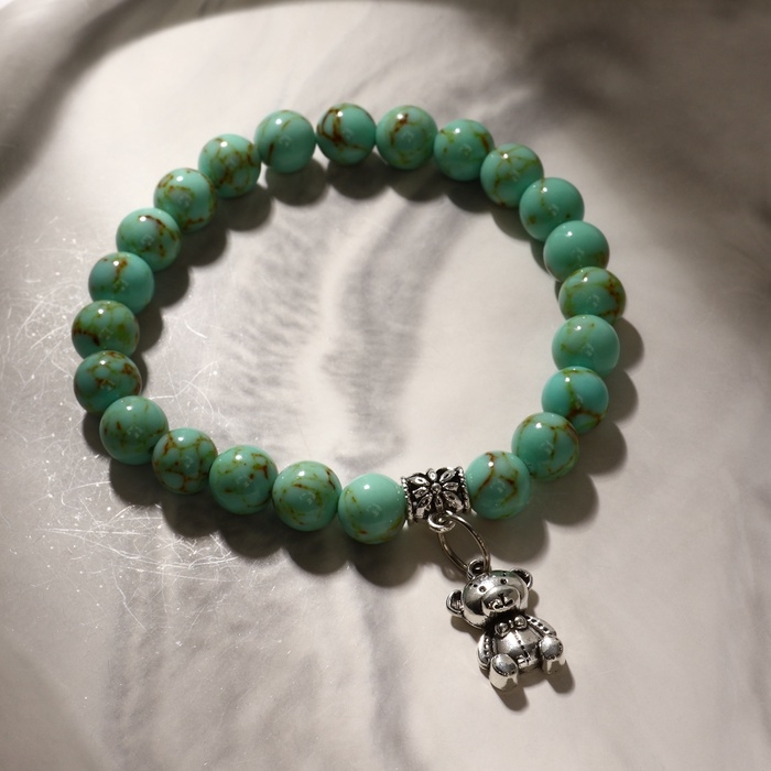 Браслет с подвеской МИКС шар №8 «Старая Бирюза»