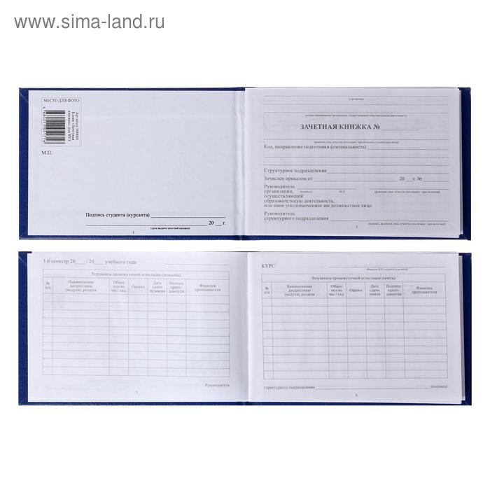 Зачетная книжка для ВУЗ 140 х 100 мм, Calligrata, жёсткая обложка, бумвинил, цвет синий