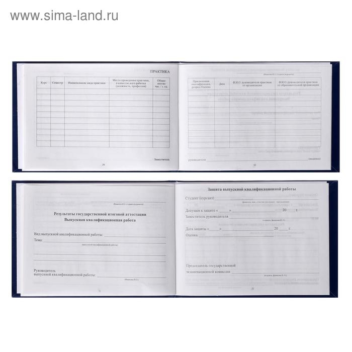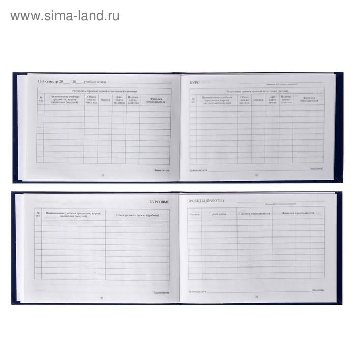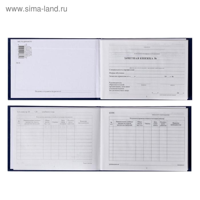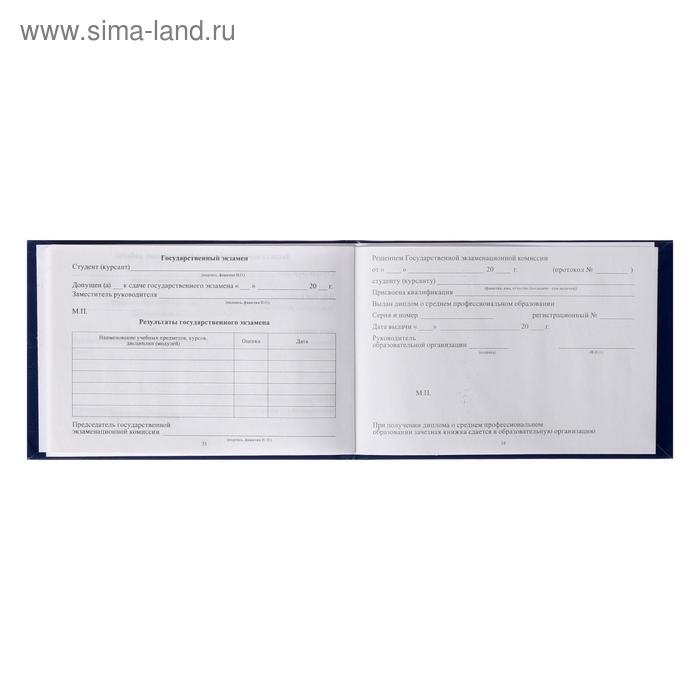Зачетная книжка для среднего профессионального образования, 140 х 100 мм, Calligrata, жёсткая обложка, бумвинил, цвет синий