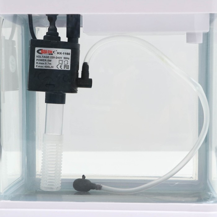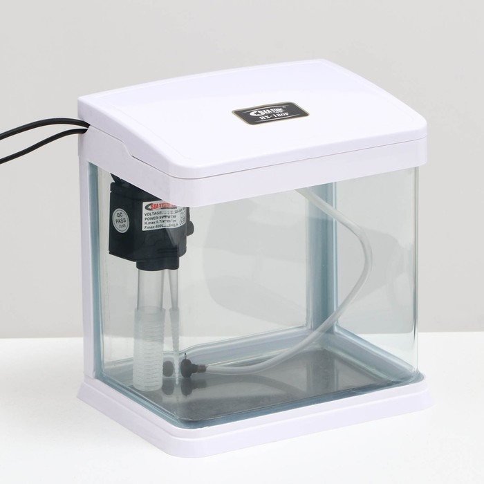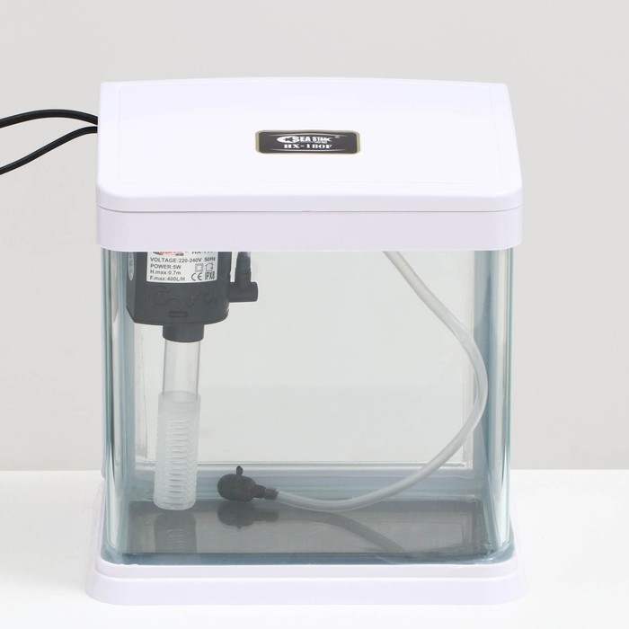 Полезный объем аквариума составляет 3.5 литра. Аквариум полностью готов к работе. Фильтр и светодиодная лампа встроены в крышку аквариума.