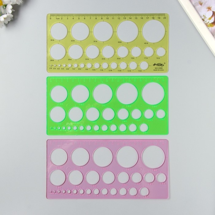Линейка для квиллинга "Круги разных диаметров" пластик МИКС 20х10 см