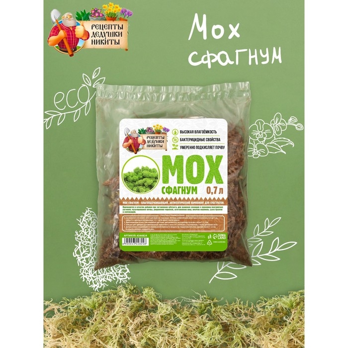 Мох сфагнум "Рецепты Дедушки Никиты" 5 л.