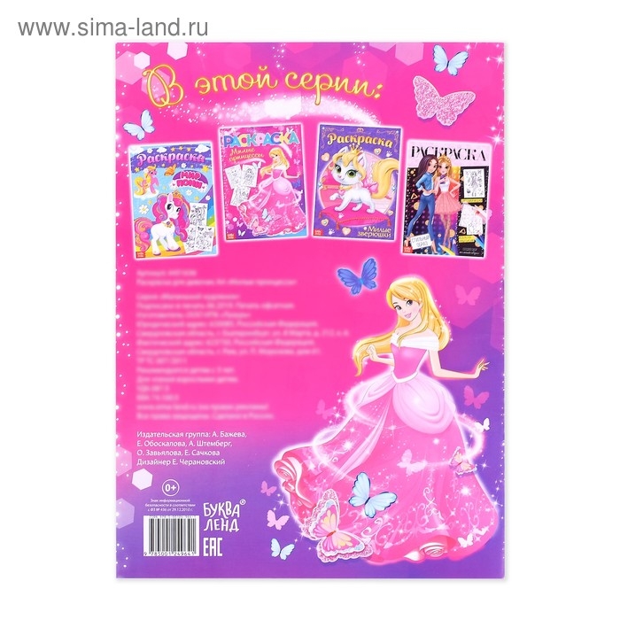 - Каждая картинка — это чистый холст для творческих идей! Кроха сможет придумать свои уникальные цветовые сочетания и создаст для каждой сказочной красавицы уникальный образ.