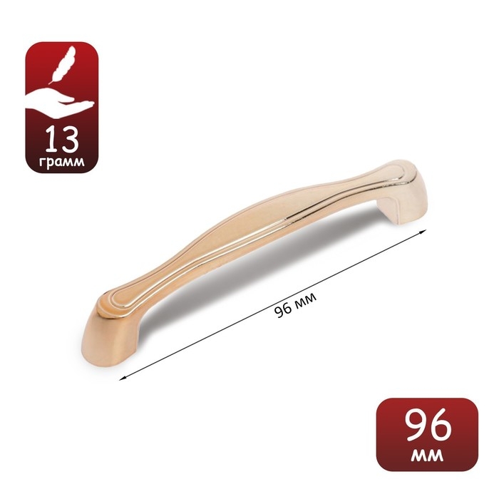 Ручка мебельная ТУНДРА РС194GP, м/о 96 мм, цвет золото