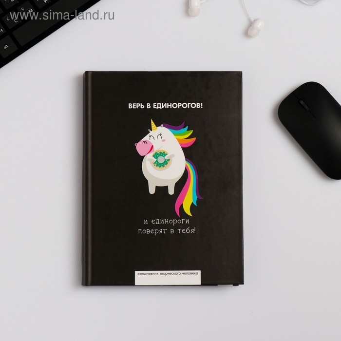 Ежедневник творческого человека с заданиями А5, 120 л. В твердой обложке «Верь в единорогов»