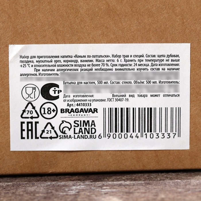 Набор для приготовления алкоголя «Коньяк»: набор трав и специй, штоф 500 мл., инструкция