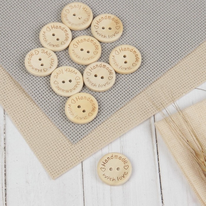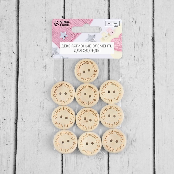 Набор нашивок из дерева «Hand made with love», 2,5 × 2,5 см, 10 шт