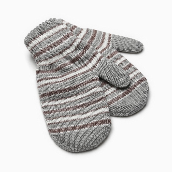 Варежки для мальчика двойные, серый с коричневым, размер 16