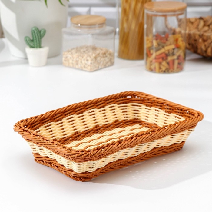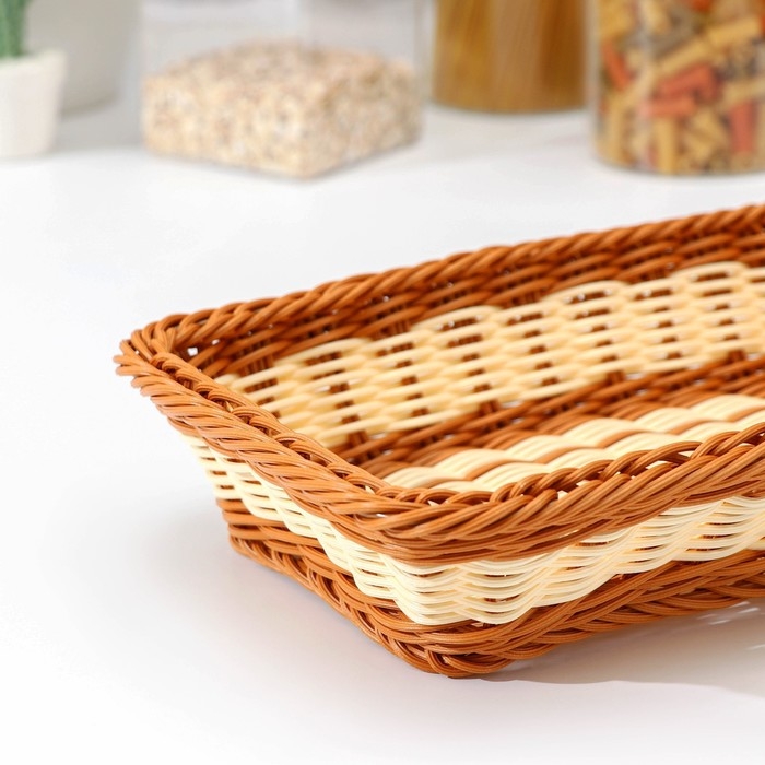 Корзинка для подачи Доляна «Плетёнка», 25×18×6,5 см, цвет коричневый