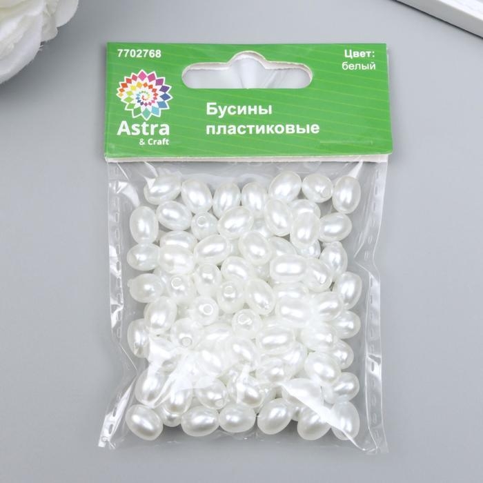Набор пластиковых бусин, 9х7 мм, 100 шт/уп (белый)