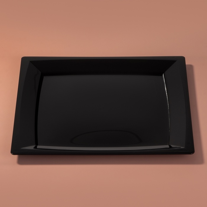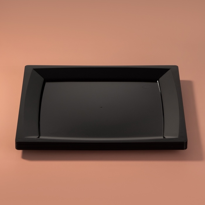 Тарелка пластиковая одноразовая 3 в 1: тарелка, вилка, нож, квадратная, черная