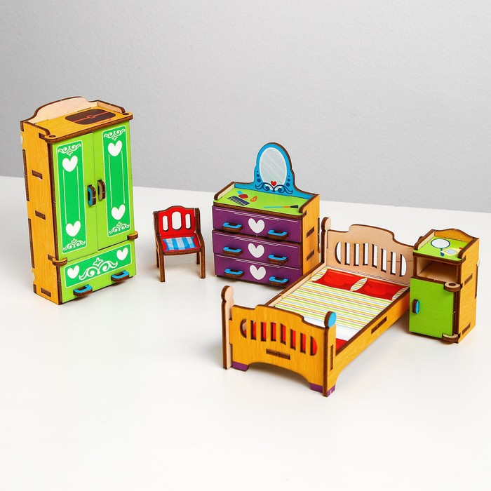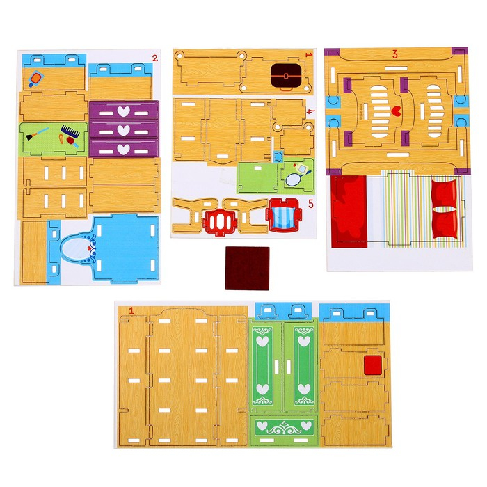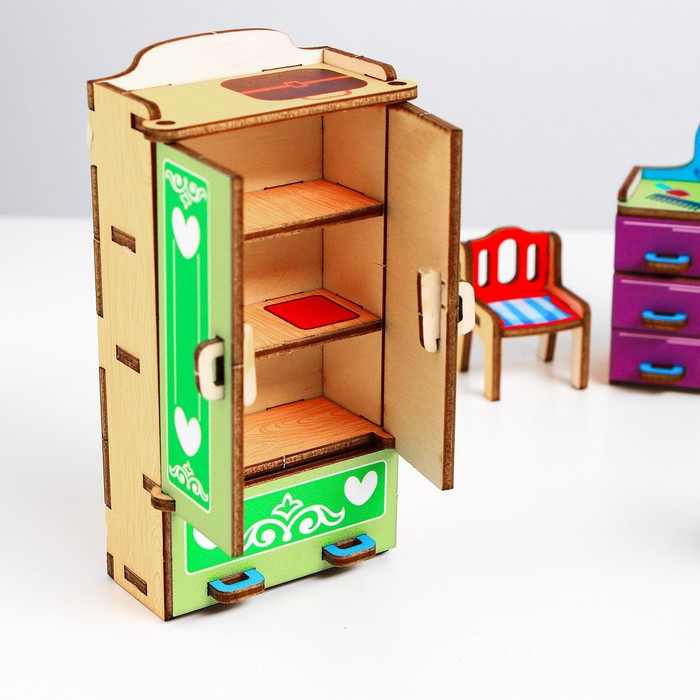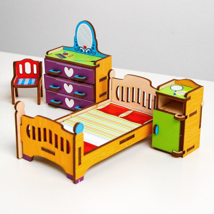 Создайте миниатюру настоящей комнаты из деревянных деталей. Предметы мебели сделаны из экологически натурального и безопасного материала. Изделия выглядят очень реалистично и идеально подойдут как для игр малыша, так и в качестве декора для детской.
