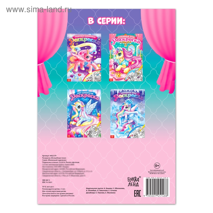 Раскраска «Волшебные пони» — книга с контурными картинками единорожек. Малышка сможет их раскрасить карандашами, красками или фломастерами. Страницы и обложка выполнены из бумаги.
