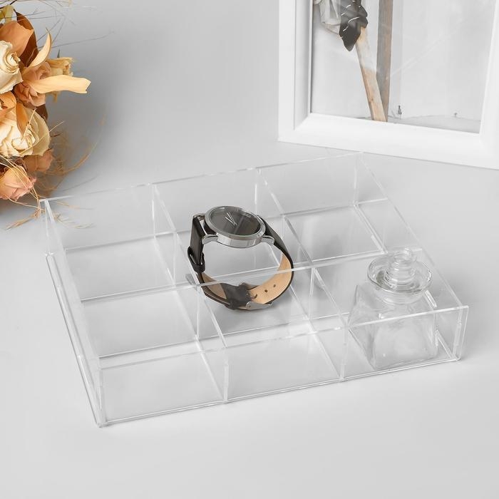 Подставка для презентации, 9 ячеек, 20,3×15,4×3,8 оргстекло 2 мм, В ЗАЩИТНОЙ ПЛЁНКЕ