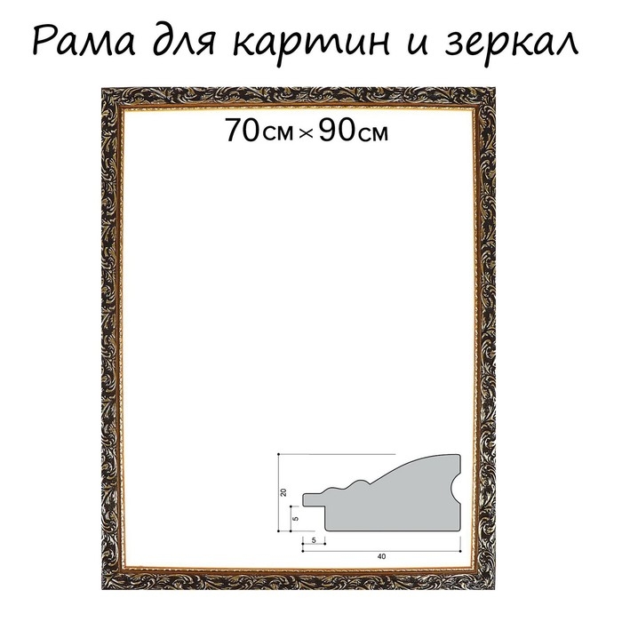 Рама для картин (зеркал) 70 х 90 х 4 см, дерево "Версаль", золотая