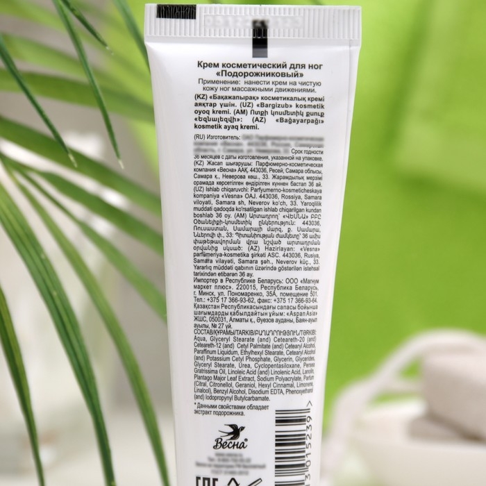 Крем для ног "Весна", подорожниковый, восстанавливающий, 40 мл
