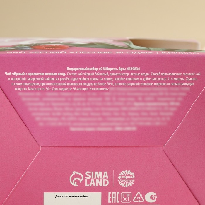 Кружка. Состав: керамика. Срок службы: 5 лет. Чай. Состав: чай черный байховый, ароматизаторы: лимон, мята. Масса нетто: 50 г. Срок годности: 36 месяцев.