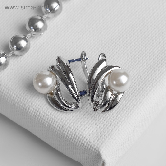 Серьги с жемчугом «Эдель» абстракция, цвет белый в серебре