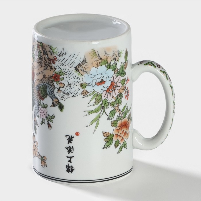 Кружка «Цветы» изготовлена из качественной керамики. Изделие дополняет керамическое сито для заваривания и крышка, благодаря которой напиток будет дольше сохранять тепло. Кружка украшена изящным восточным рисунком.