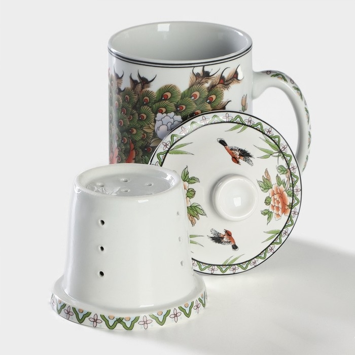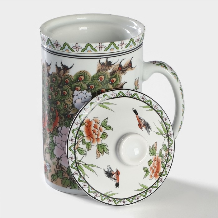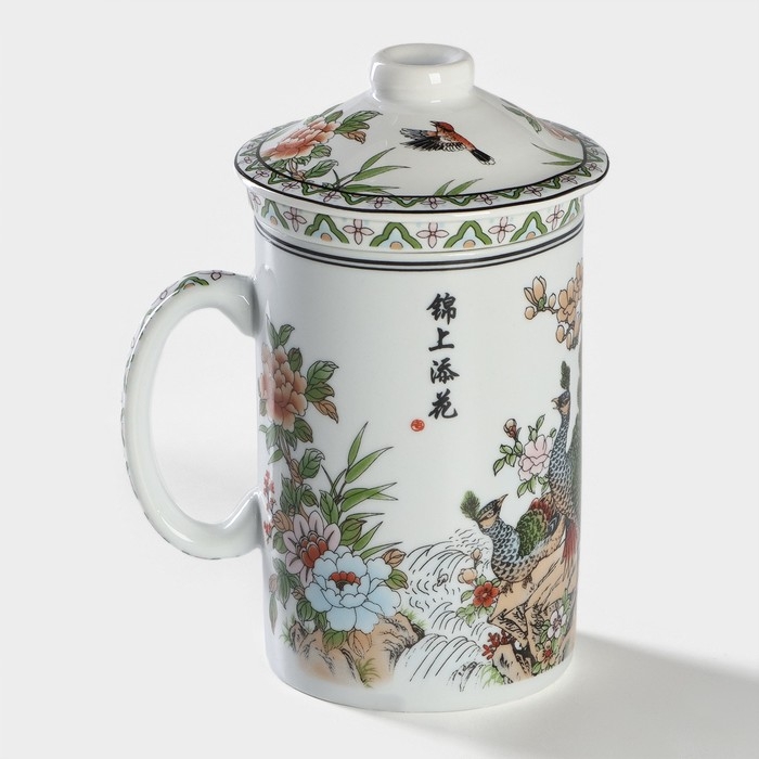 Кружка керамическая с крышкой и ситом «Цветы», 300 мл