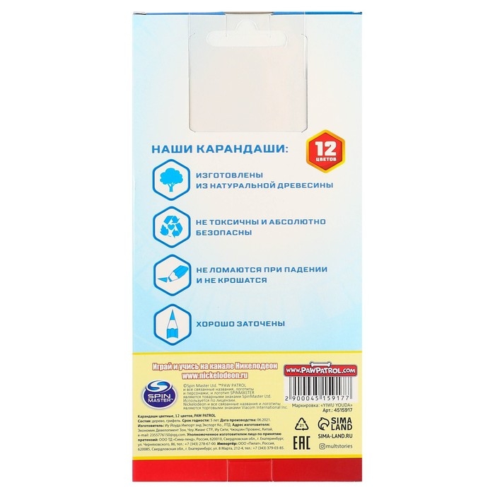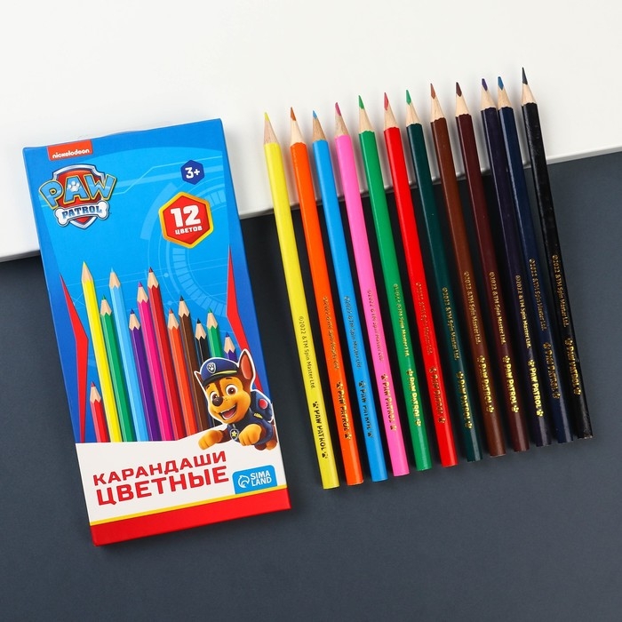 Цветные карандаши, 12 цветов, трехгранные, Щенячий патруль