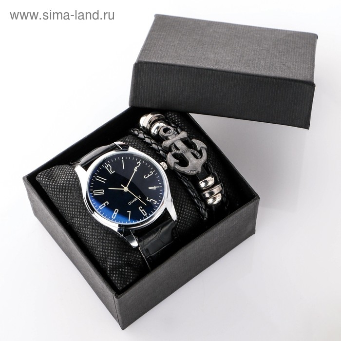 Мужской подарочный набор Boune 2 в 1: наручные кварцевые часы, браслет "Якорь"