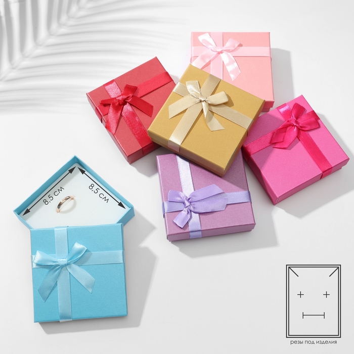 С нашими прекрасными коробочками любой подарок станет еще лучше и ярче. Футляр выполнен из прочного плотного картона. Оптимальный размер коробки 9*9см позволяет разместить разнообразные виды ювелирных изделий – от сережек до колье. Внутри каждой коробочки с крышкой есть белая бархатная подложка. С помощью специальных прорезей на подушечке можно аккуратно разместить и зафиксировать цепочки, гвоздики и перстни. А если убрать подложку, упаковка подойдет даже для часов с мягким плоским ремешком или на цепи.
