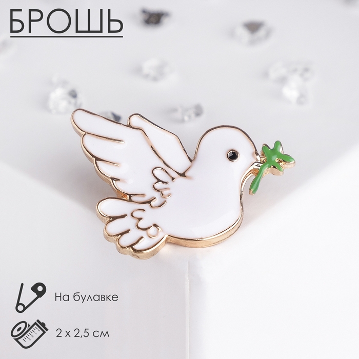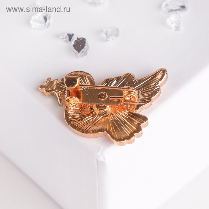Брошь «Птица» голубка, цвет бело-зелёный в золоте