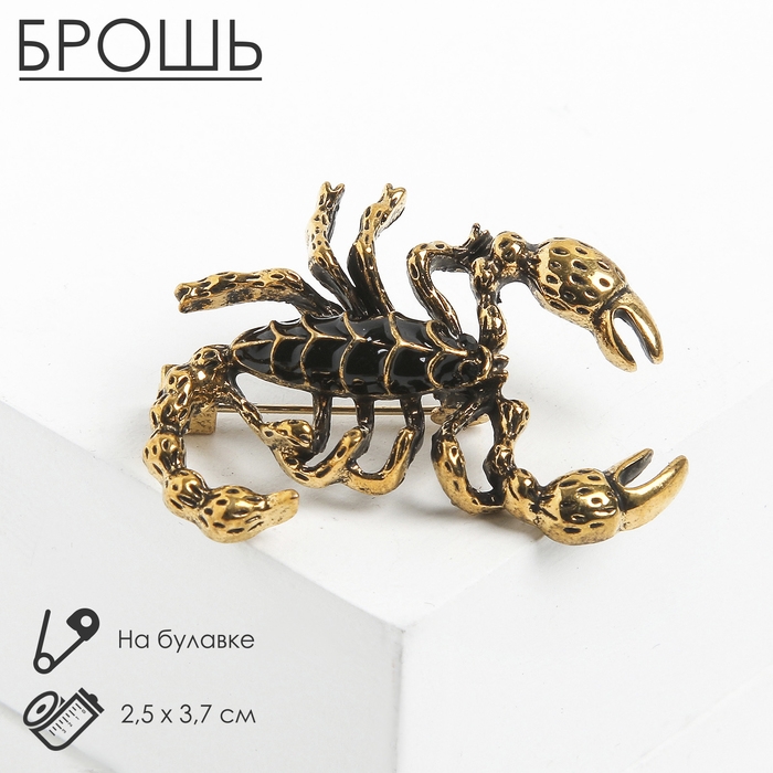 Брошь «Скорпион», цвет чёрный в чернёном золоте