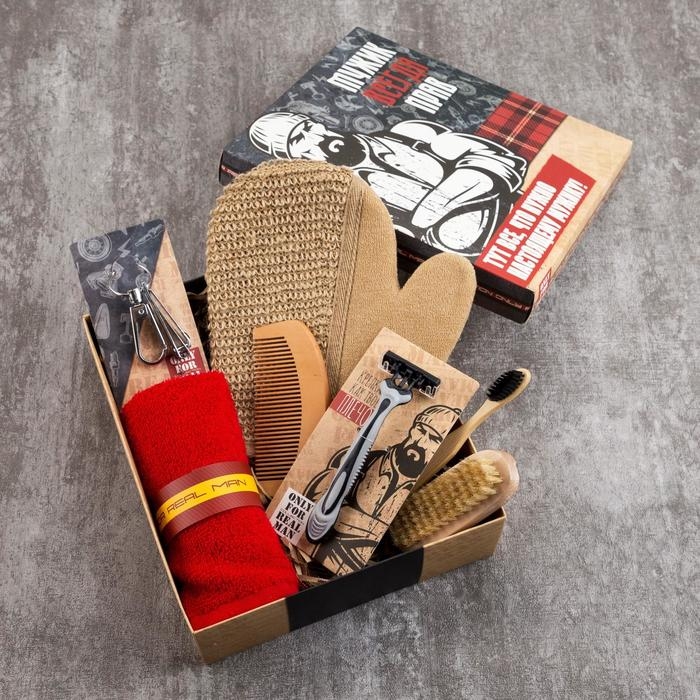 Бритвенный станок, Варежка-мочалка, Зубная щётка, Полотенце, Принадлежности для маникюра, Расчёска для волос, Щётка