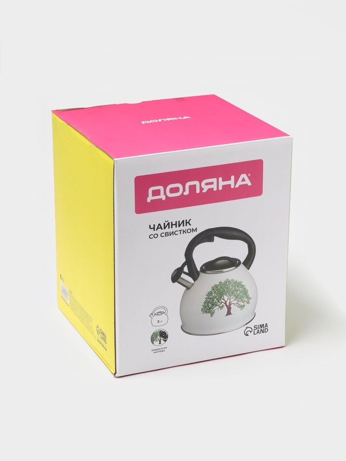 Чайник со свистком из нержавеющей стали Доляна Magic forest, 3 л, с индикатором нагрева, индукция